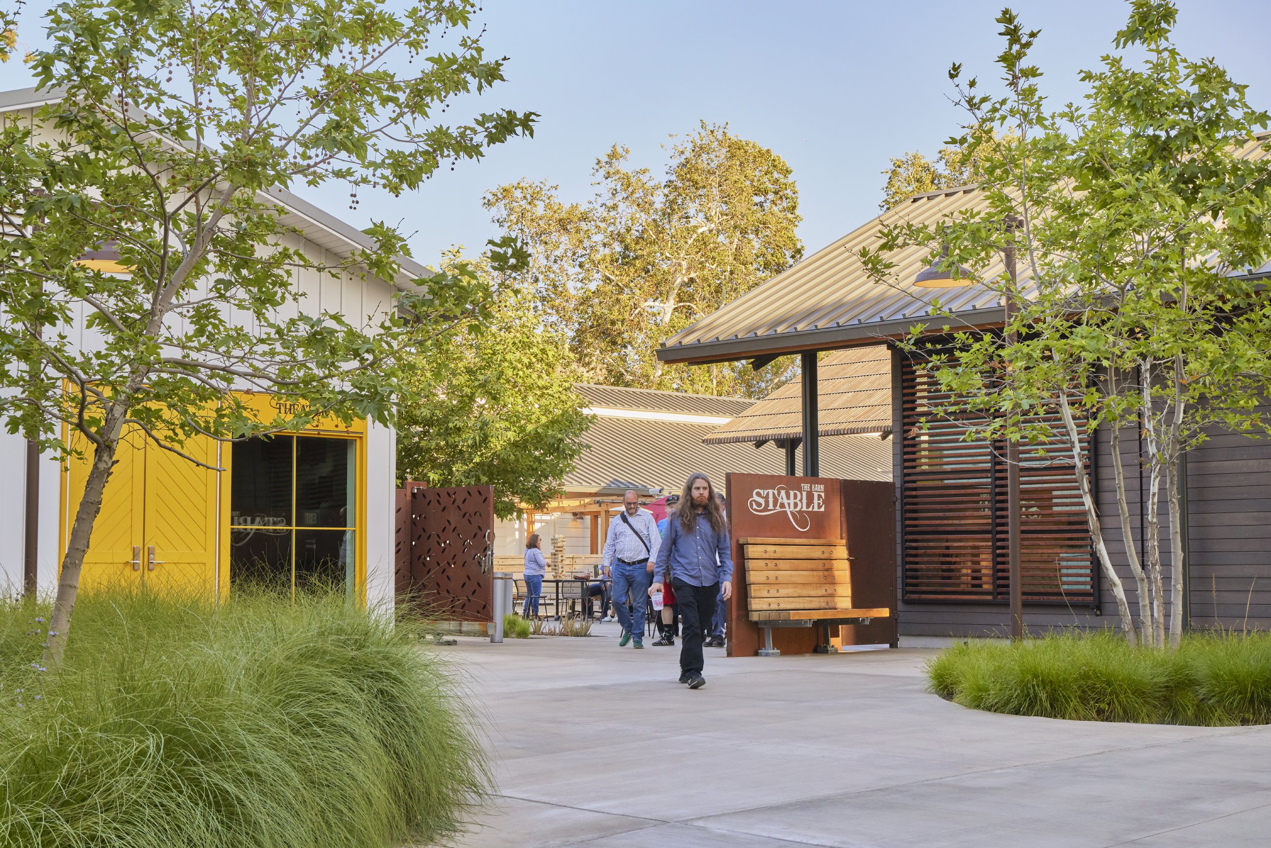 This landscape was designed alongside the renovation and expansion of the University of California, Riverside (UCR)'s ‘Historic Barn’ Event Center. The 2-acre site carves out new creative spaces for students to study or relax in an exterior garden environment, shaded by the dappled light of tree canopies above. The plant palette consciously utilizes drought-resistant and low-maintenance species and incorporates a dry boulder swale. The project addresses connections with the UCR campus as a whole by preserving a large portion of the existing Citrus grove and linking existing corridors.
